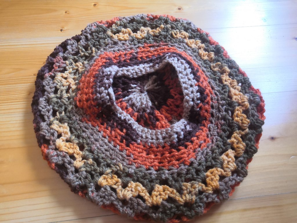 Háčkovaná volnější baretka v podzimních medových barvičkách. Originální kousek, který zahřeje, potěší. Baretka je na obvod hlavy 52 cm. Háčkováno z příze Alize Burcum batik. I zde na vás čeká 1 kousek :)