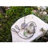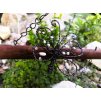 Drátovaná dekorace ve spojení s mořeným tesaným dřívkem. Z černého žíhaného drátu je na dřívku usazený motýlek (zdobení motýlka je bílými skleněnými korálky) a pod ním zavěšený ptáček (zelené skleněné korálky). Jedná se o jemné drátování, které zcela jistě udělá radost jako originální dárek :) Celé drátování zvlášť vynikne v okně nebo volném prostoru nad krbem či kde se vám zlíbí. Celková výška dekorace je 31 šířka 23 cm. I zde na vás čeká jeden jediný kousek, proto neváhejte.. ;)