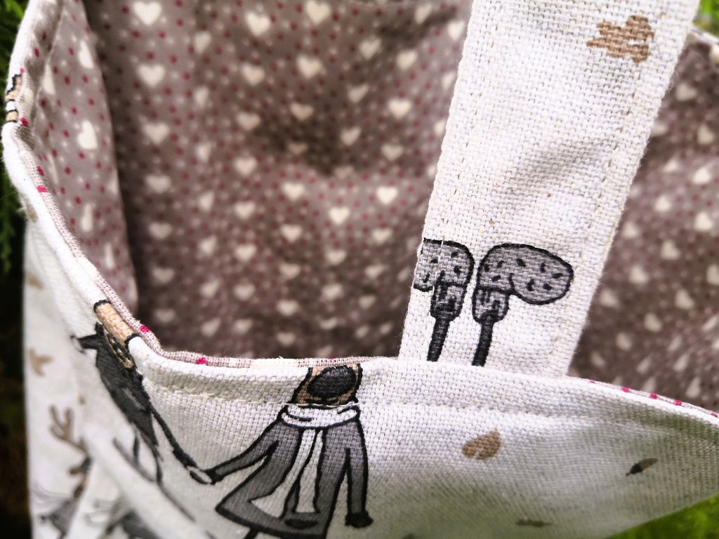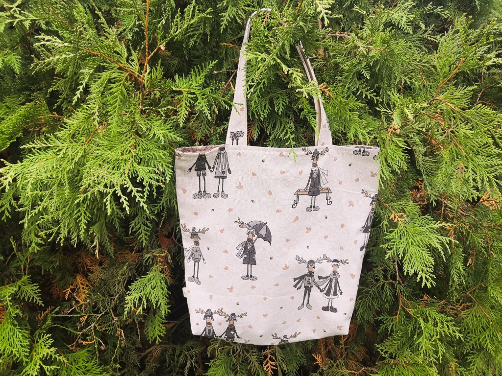 Jedinečná nákupní tašku s motivem sobíků, kterou určitě oceníte nejen při běžných nákupech, ale radost udělá třeba jako vánoční dárek. Taška má podšívku, rozšířené dno a pevná, podšitá ucha. Vnější materiál režná látka, vnitřní 100% bavlna, rozměry tašky 35 x 33 x 8 cm. I zde na vás čeká 1 kousek :)